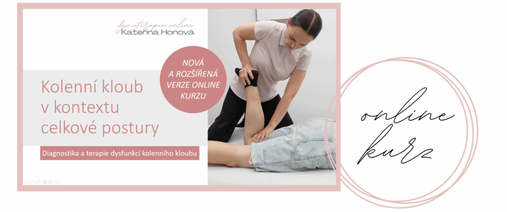 Pokud jste terapeuti, mohu vás nasměřovat na online kurz s tématem diagnostiky a terapie kolenního kloubu. Najdete ho v záložce Online materiály – Online kurzy – Pro odborníky, nebo klikněte níže na obrázek.